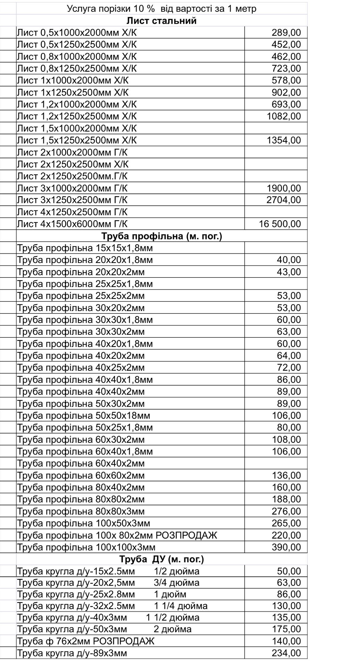 - ТРУБИ, ЛИСТИ СТАЛЕВI. 02.10.2025